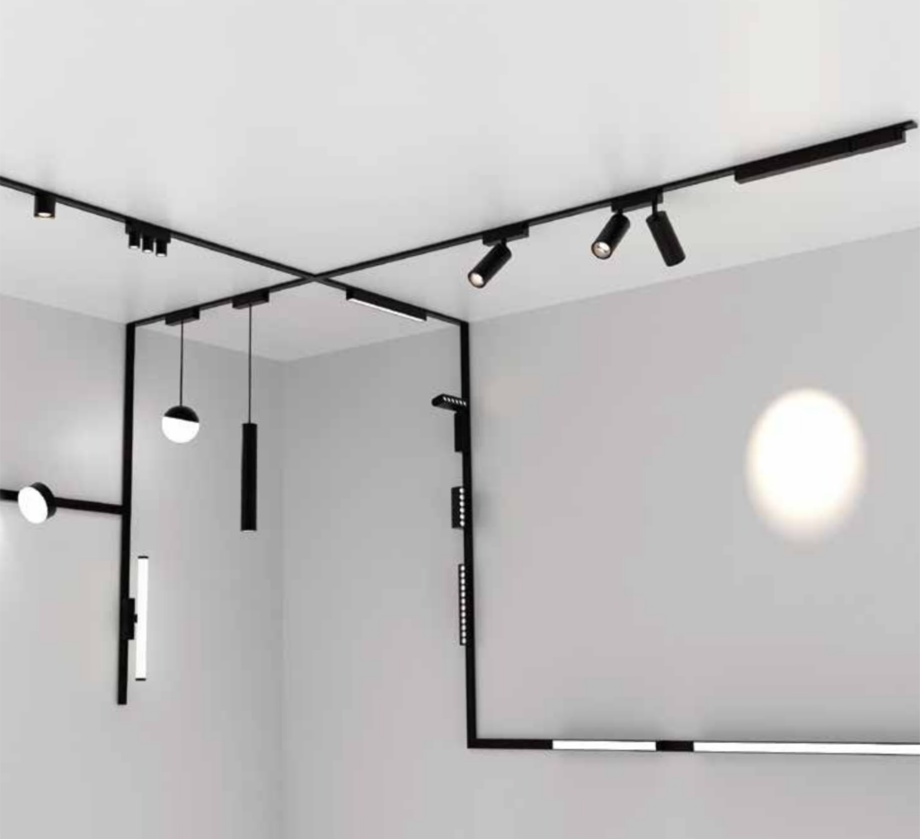 מינימליזם אדריכלי: פסים מגנטיים בעובי 5 מ"מ בלבד למראה נקי ויוקרתי שמשתלב בקו התקרה.